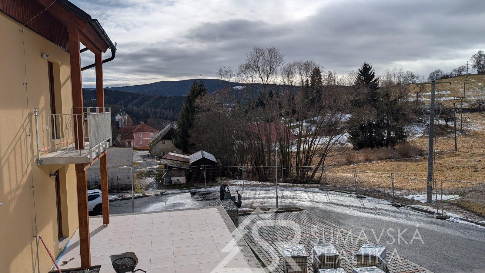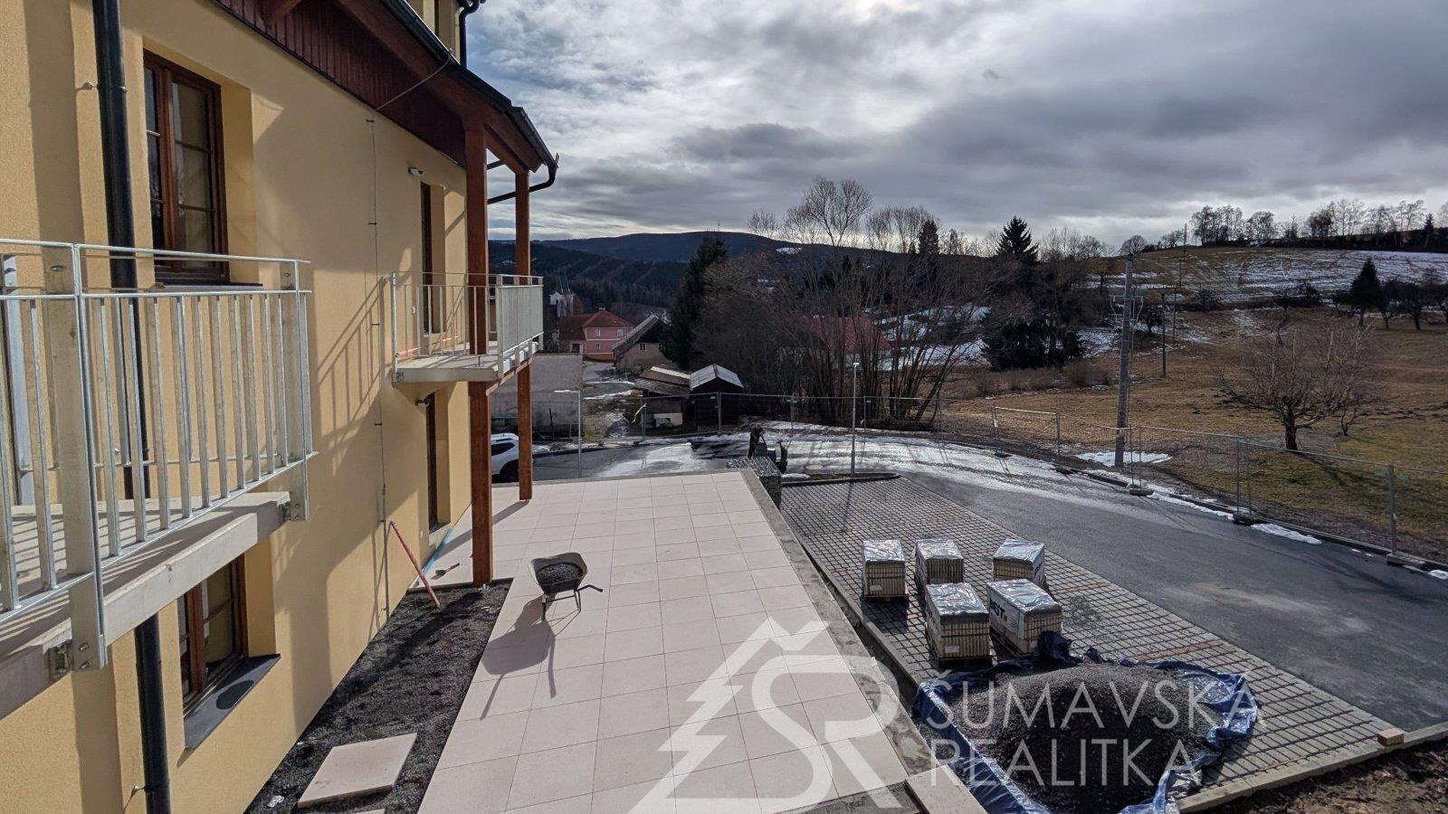 NOVÝ BYT 2+kk S OHROMNOU TERASOU - KAŠPERSKÉ HORY - ŠUMAVA. Lokalita: zcela nový, právě dokončovaný bytový dům o 24 bytech má dobrou adresu na Šumavě - v malebném horském středisku Kašperské Hory 758 m n.m. Nad ním završuje siluetu okolních hor nejvýše položený hrad v Čechách - středověký Kašperk založený Karlem IV. k ostraze zemské hranice a Zlaté stezky. Hrad Kašperk je dominantou města a spolu s nádhernou krajinou vytváří kouzlo spojení se starou Šumavou. Malebné náměstí s renovovanými historickými domy, kašnou, radnicí, která by mohla být kulisou do pohádky a gotickým kostelem sv. Markéty. V Kašperských Horách se alespoň na chvíli přenesete do doby Karla IV. Ve městě je perfektní občanská vybavenost (škola, školka, lékařský dům, kino, muzea, knihovna, obchody a restaurace s příjemným posezením). Na okraji města směrem k Amáliinu údolí je moderní SKIAREÁL, vybavený večerním osvětlením sjezdovek a lyžařskou školou s půjčovnou. V létě najdete v okolí mnoho krásných míst dostupných na elektrokolech nebo pěší turistikou.