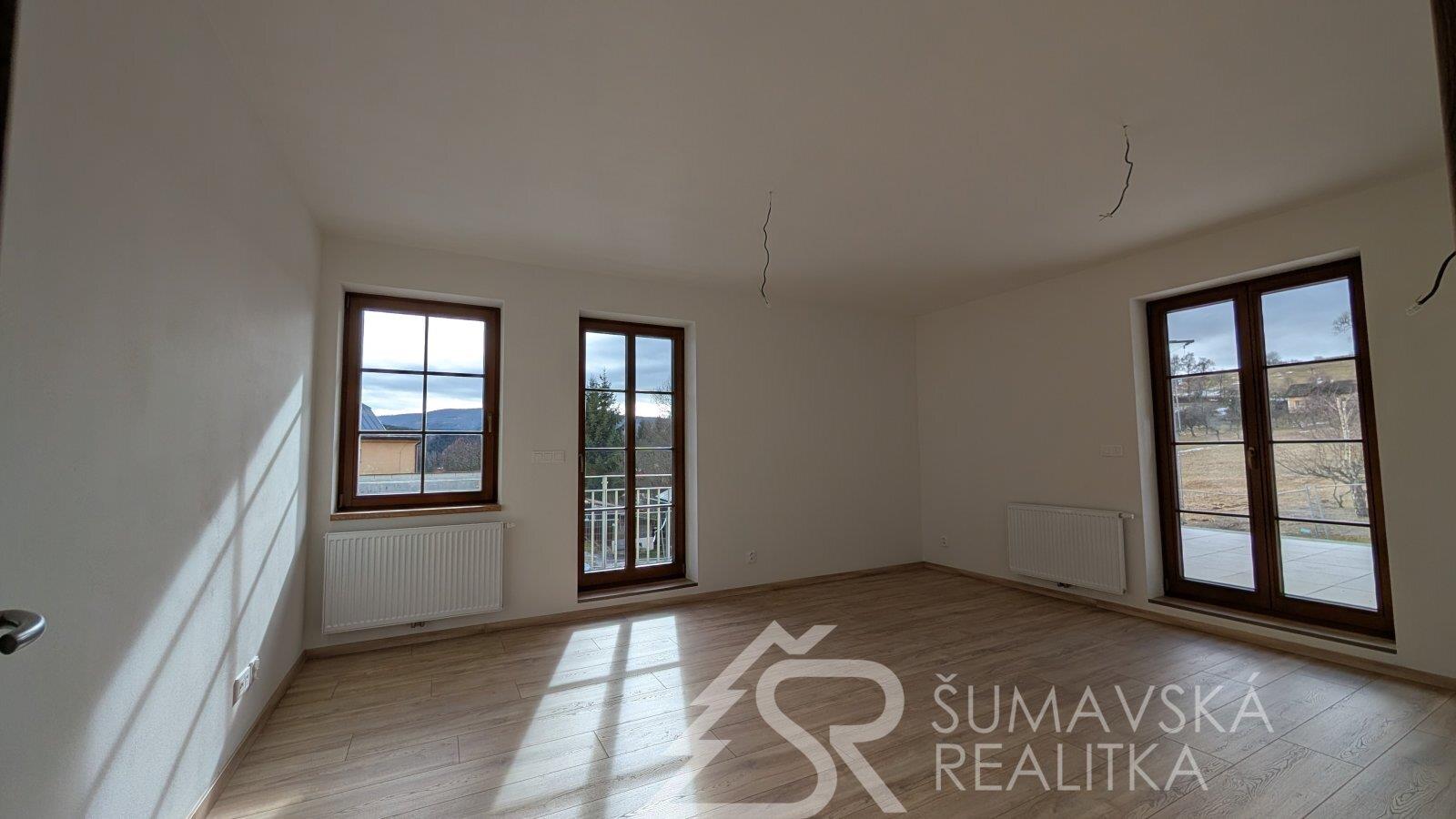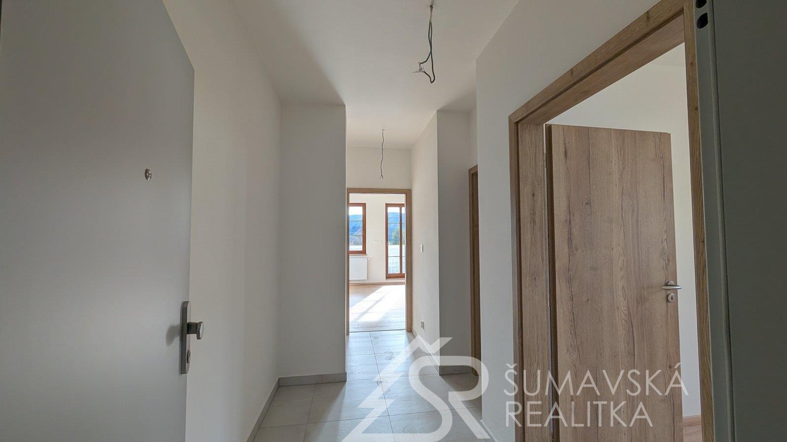 NOVÝ BYT 2+kk S OHROMNOU TERASOU - KAŠPERSKÉ HORY - ŠUMAVA. Lokalita: zcela nový, právě dokončovaný bytový dům o 24 bytech má dobrou adresu na Šumavě - v malebném horském středisku Kašperské Hory 758 m n.m. Nad ním završuje siluetu okolních hor nejvýše položený hrad v Čechách - středověký Kašperk založený Karlem IV. k ostraze zemské hranice a Zlaté stezky. Hrad Kašperk je dominantou města a spolu s nádhernou krajinou vytváří kouzlo spojení se starou Šumavou. Malebné náměstí s renovovanými historickými domy, kašnou, radnicí, která by mohla být kulisou do pohádky a gotickým kostelem sv. Markéty. V Kašperských Horách se alespoň na chvíli přenesete do doby Karla IV. Ve městě je perfektní občanská vybavenost (škola, školka, lékařský dům, kino, muzea, knihovna, obchody a restaurace s příjemným posezením). Na okraji města směrem k Amáliinu údolí je moderní SKIAREÁL, vybavený večerním osvětlením sjezdovek a lyžařskou školou s půjčovnou. V létě najdete v okolí mnoho krásných míst dostupných na elektrokolech nebo pěší turistikou.