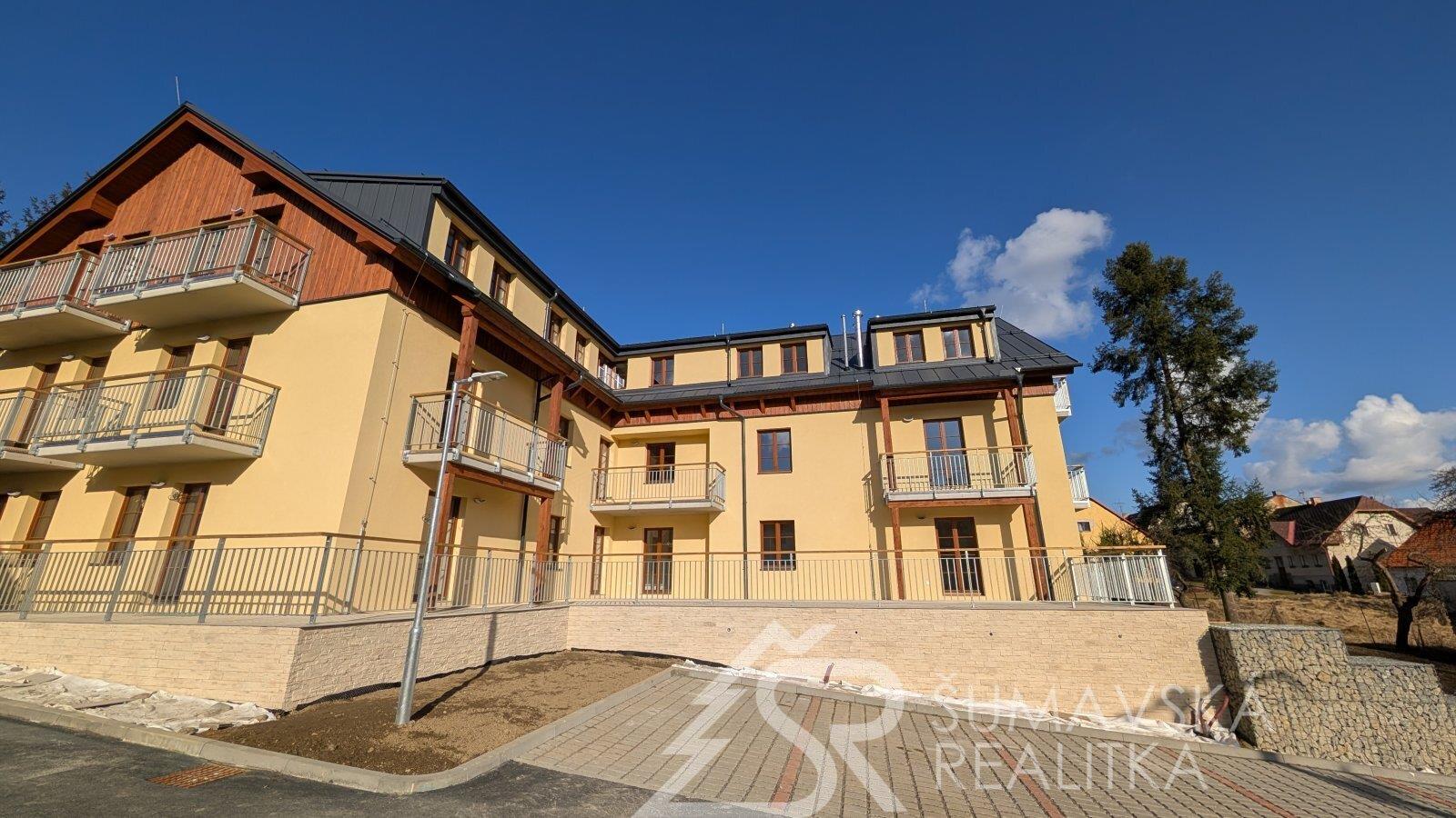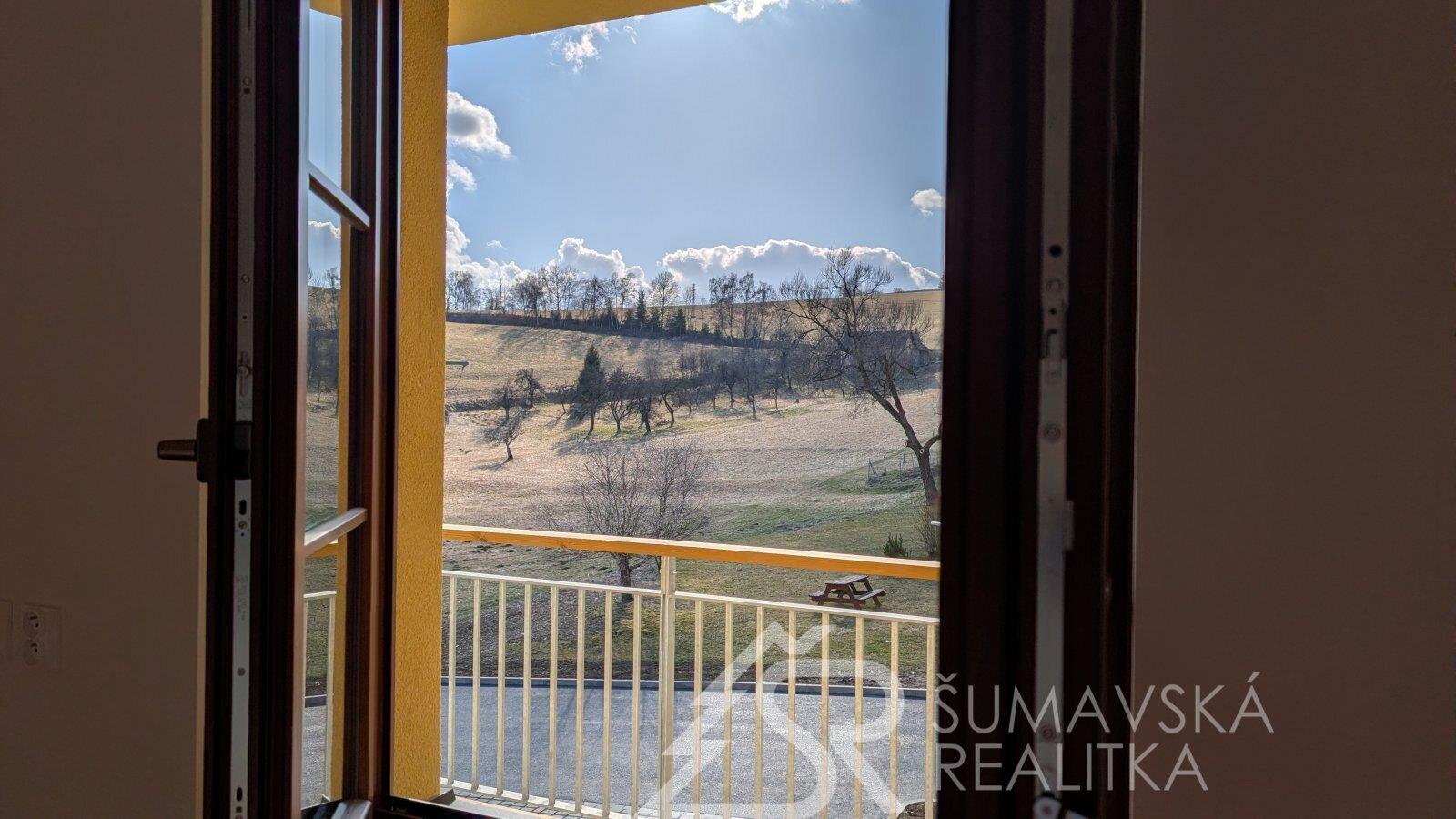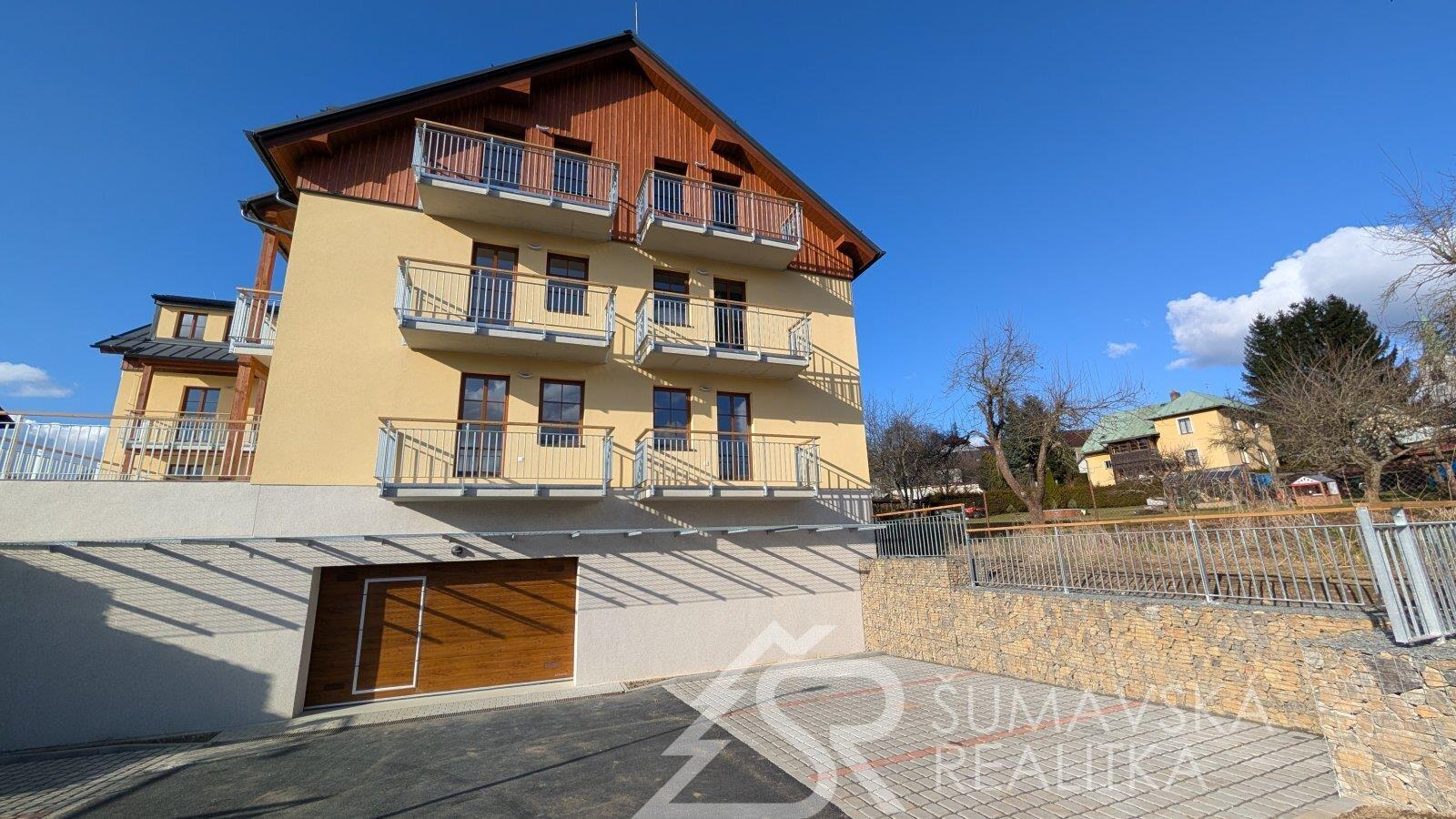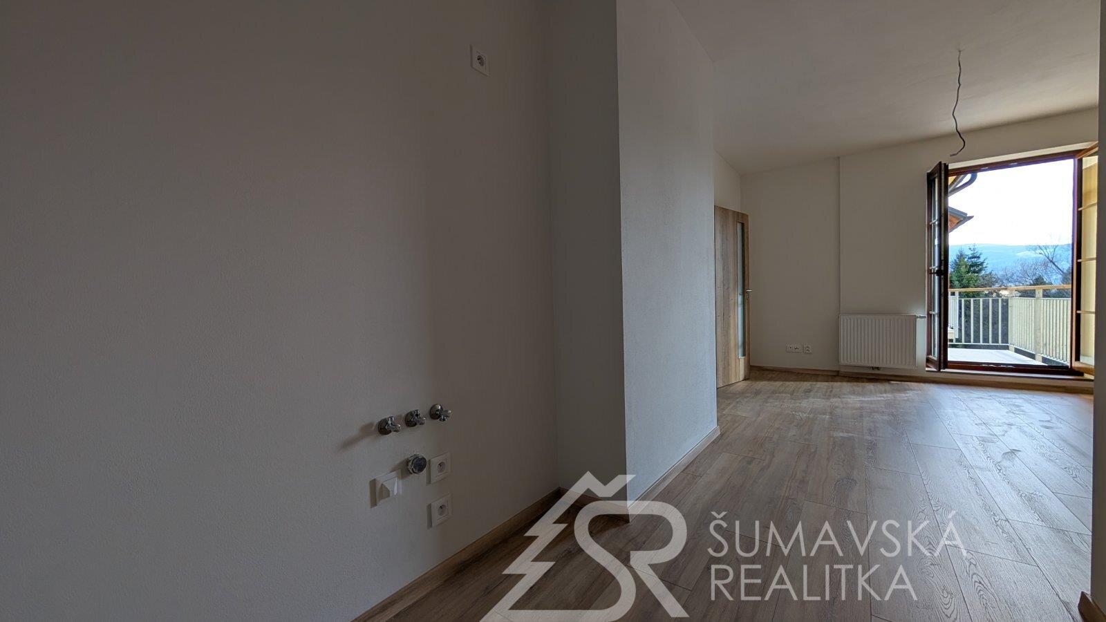 Moderní 2+kk s velkým balkonem a výhledem na Šumavu, parkování v domě, novostavba se zárukou.