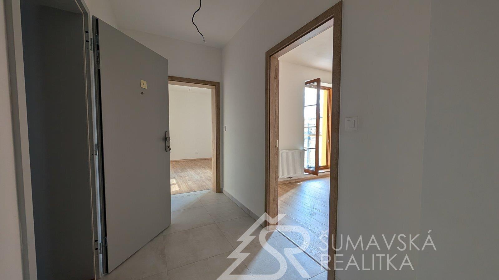 MODERNÍ 2+KK S VELKÝM BALKONEM A VÝHLEDEM NA ŠUMAVU, PARKOVÁNÍ V DOMĚ, NOVOSTAVBA SE ZÁRUKOU,