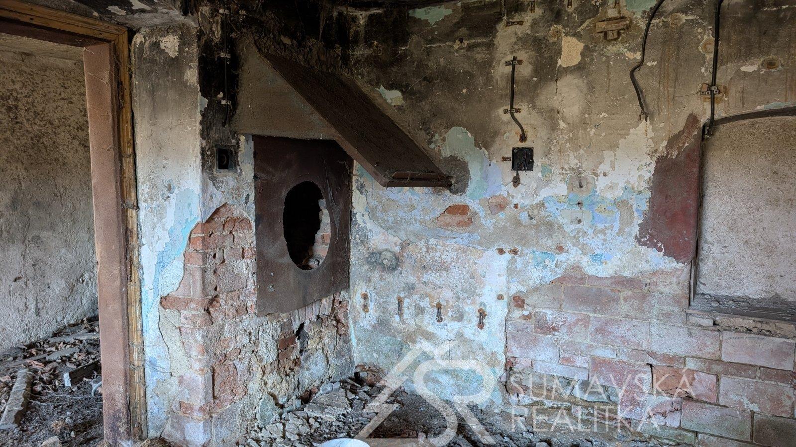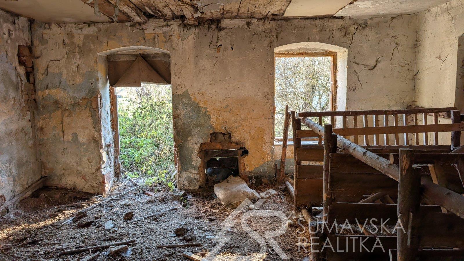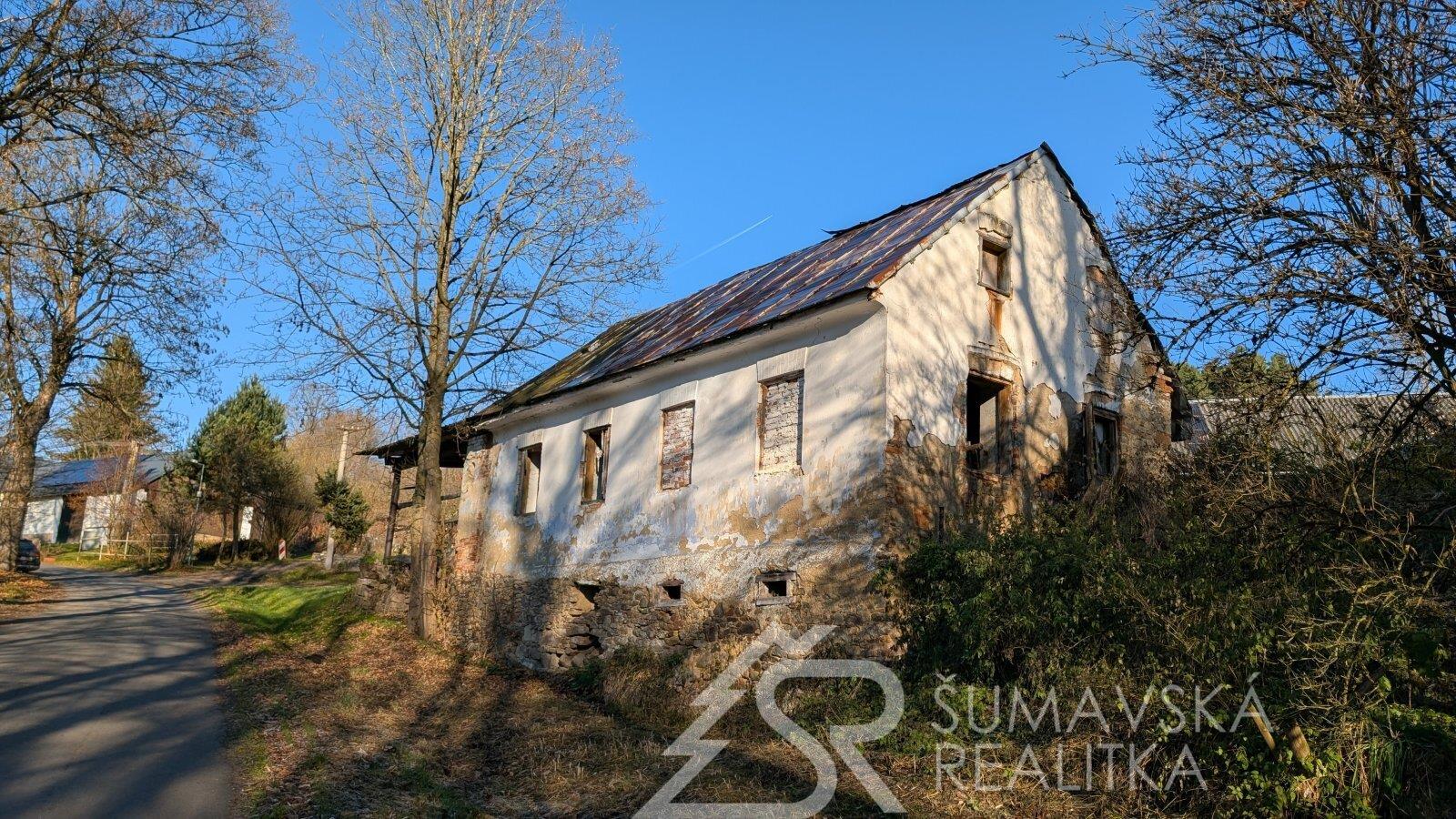 Popis: jedná se o bývalou kovárnu ležící přímo u komunikace v obci Tuškov u Kašperských Hor. Na pozemku o velikosti 197 m2 stojí podsklepený dům o půdorysných rozměrech 6,8 x 18 m. Zastavěná plocha stavbou je 113 m2. Dům sice není v dobré kondici, ale stavebními úpravami lze z něho vytvořit něco smysluplného. Výhodou je celé podsklepení ze stabilního kamenného zdiva se zastropením do kleneb.