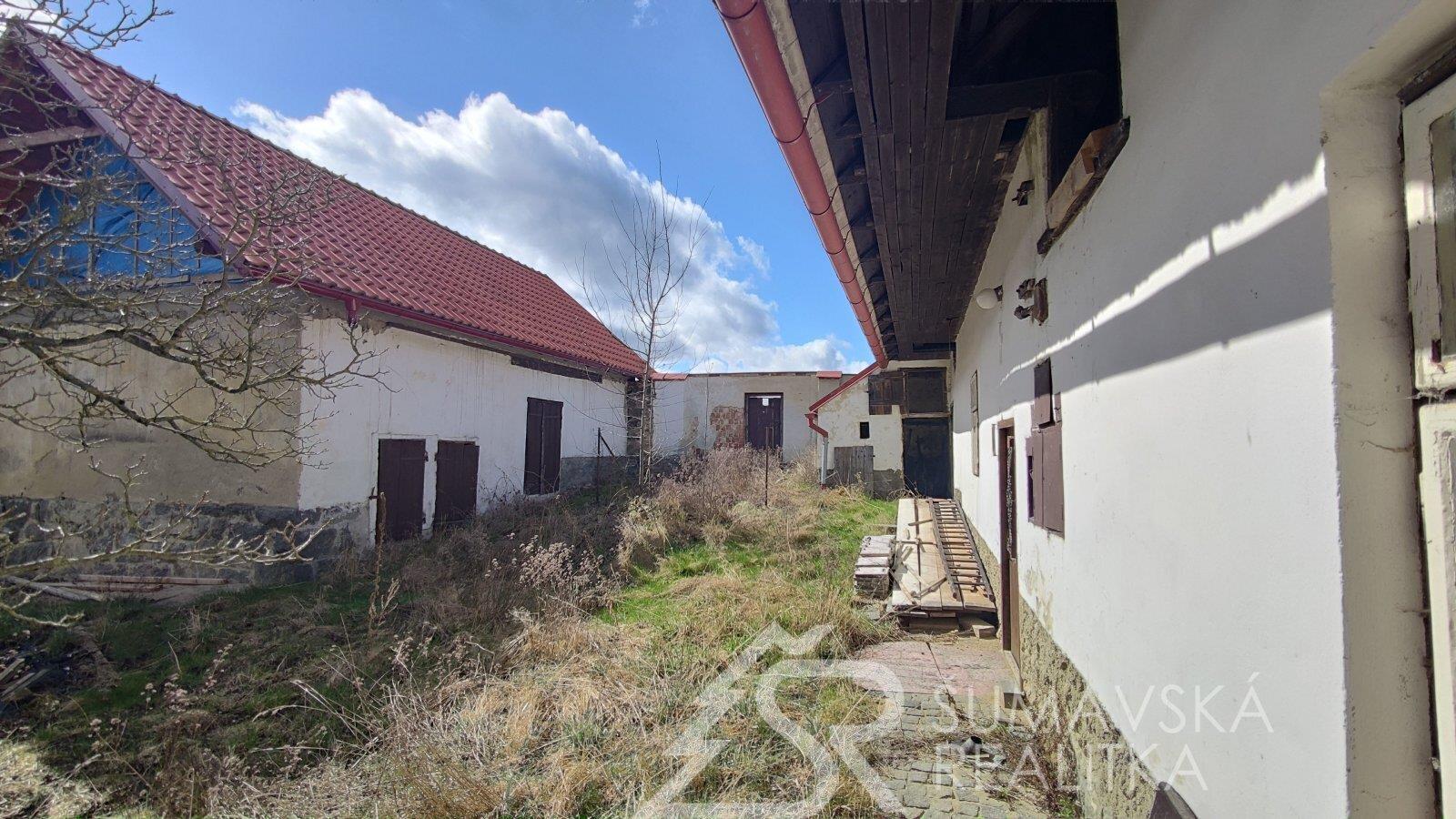 Popis nemovitosti: původní malá zděná venkovská usedlost s průčelím, jemuž dominují bílé štíty obytného stavení a stodůlky spojené branou. Ta uzavírá soukromý svět v útulném nádvoří, které je z opačné strany orientované do volné přírody chráněno starým sadem. V chalupě byla provedena příprava na rekonstrukci odhalením a zabezpečením konstrukčních prvků stavby. Pro nového majitele je připravena rovněž alternativa realizace novostavby na místě původní chalupy – a to s kompletní projektovou dokumentací pro novostavbu se dvěma samostatnými bytovými jednotkami – komfortními apartmány vhodnými pro trvalé bydlení i rekreaci. K tomu je již vydáno pravomocné stavební povolení s tím, že realizace již byla zahájena přípravnými pracemi do fáze, kdy se nový vlastník může ještě rozhodnout buď pro rekonstrukci původní chalupy – nebo pro novostavbu. Proto nemá smysl popisovat zde interiéry původní starobylé chalupy. Pro rozhodnutí, zda ji renovovat nebo na jejím místě realizovat její repliku, případně i moderněji pojatou novostavbu ve venkovském stylu je nutno tuto nemovitost vidět - a hlavně vnímat jedinečný genius loci místa.