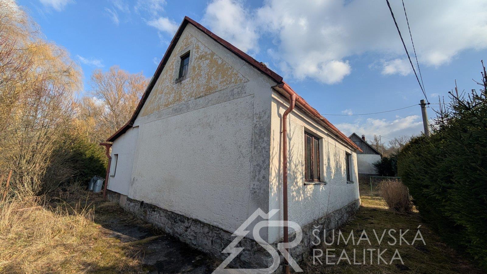 Popis: dům se nachází na horním konci obce Strašín u odbočky na Nahořánky v místě krásných výhledů na mohutný Žďánov a mystickou horu Sedlo s keltským hradištěm a rozhlednou. Na půdorysných rozměrech 9,4 x 9,6 m byl vystavěn asi už v poválečném období sympatický dům, který je částečně podsklepen a má sedlovou střechu. V přízemí se nachází byt 2+1 s prostornou vstupní chodbou. Dům je napojen na obecní vodovod (vodoměr je umístěn ve sklepě) i kanalizaci. Samozřejmostí je i zavedená i fungující elektřina. V půdním prostou je zatím nevyužitá půda, ale půdní vestavba by šla realizovat. Střešní krytina je z falcovaného plechu krytým nátěrem. Okna v celém objektu jsou dřevěná špaletová. K domu je přistavěna dílna. Na přívětivém a rovinatém pozemku je ještě přístavba s provizorním letním ubytováním s vlastním sociálním zařízením. Malý dřevěný sklad je vedle tohoto letního bytu. Celá nemovitost je po obvodu osázena vzrostlým živým plotem zajišťující soukromí a klid.