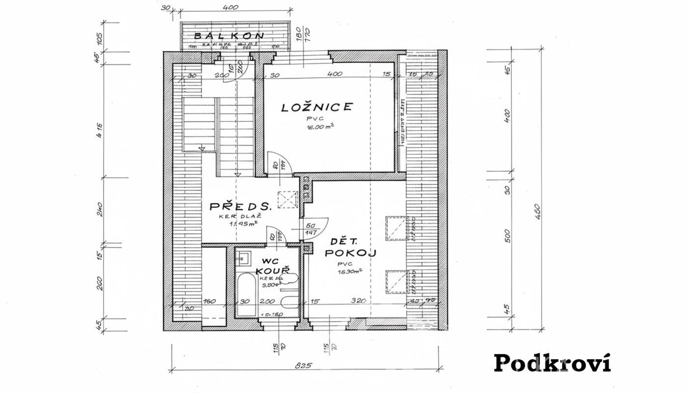 2. NP ložnice 16 m2, pokoj se střešním oknem 16 m2, koupelna s WC (5,2 m2), předsíň (12 m2), úložný prostor (3 m2)