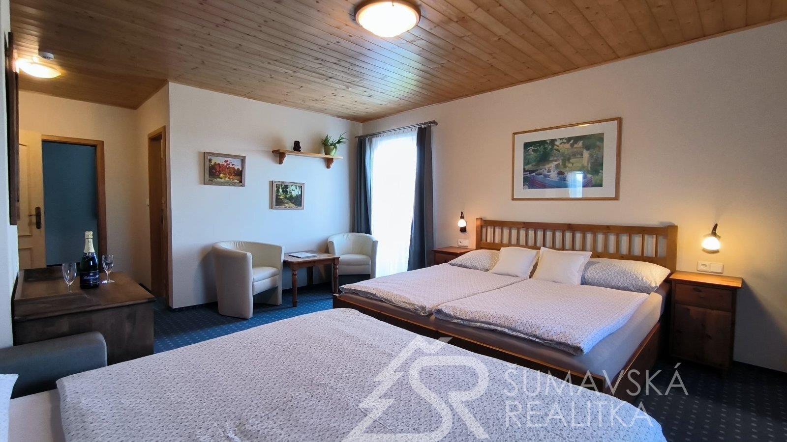 Nabízíme zavedený, na dvě budoucí sezóny plně vyprodaný penzion na Šumavě s pozemkem o celkové výměře 6.269 m2, bez jakékoliv potřebné investice či nutnosti změny. Zrekonstruován byl v roce 2014 a postupně dál modernizován. Každý pokoj má svoje sociální zařízení i kuchyňskou linku vybavenou myčkou na nádobí. Kromě budovy a pozemků získáte i know-how majitelky.