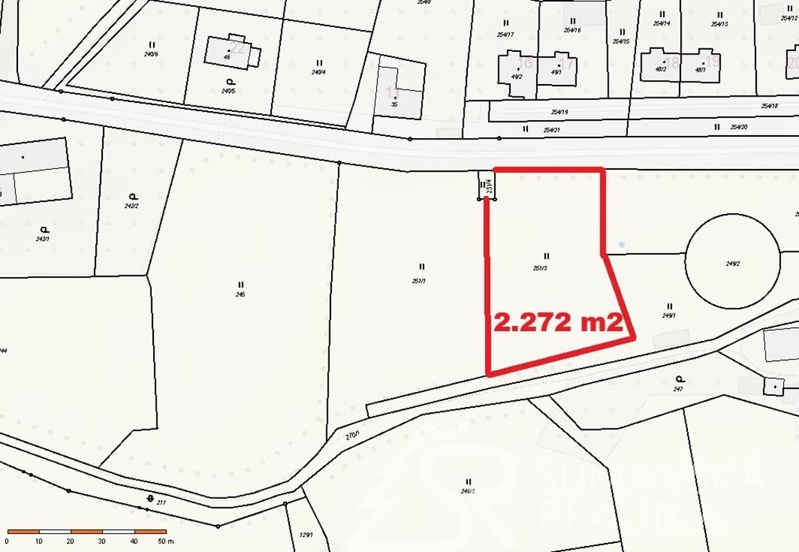 STAVEBNÍ POZEMEK S VÝHLEDEM NA ŠUMAVU O VÝMĚŘE 2272 m2, ZALUŽÍ U SUŠICE